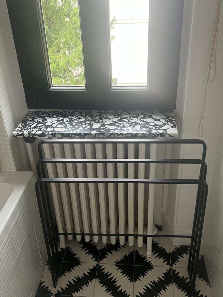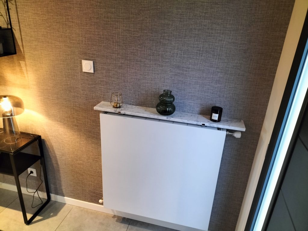 Optimiser un linéaire mural avec radiateur et mobilier intégré, c’est faire le choix d’un aménagement intelligent, esthétique et durable. Grâce à des étagères de radiateur en pierre naturelle et à une conception sur mesure, le mur devient un véritable support d’expression architecturale.