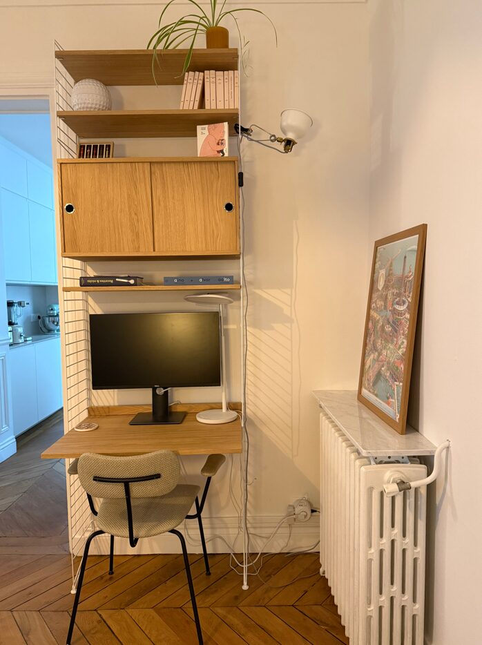- Une cohérence globale entre radiateur, étagère et mobilier.