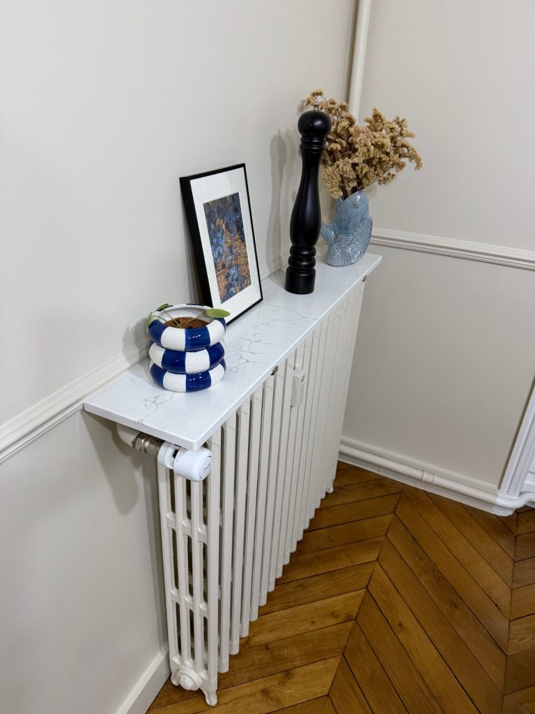 L’intégration d’une étagère de radiateur en pierre naturelle, pensée sur mesure, permet :