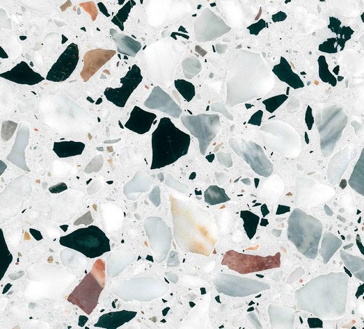 - Le terrazzo, revisité dans des palettes sobres et élégantes, introduit une touche contemporaine assumée, sans rompre l’harmonie globale.